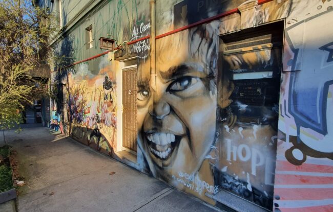 Newtown; Artist - Peque, near Rolling Penny, The End of King, Parliament on King, South End Cafe, Khamsa Cafe, Flour Drum, Either Or, Chill Cafe…