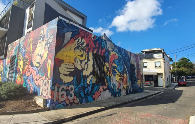 Newtown; Artist - Chrisna Tanra, near Emma's Snack Bar, Young Henrys, Courthouse Hotel, Black Star Pastry, Mary's Newtown, Barmuda, 212 Blu…